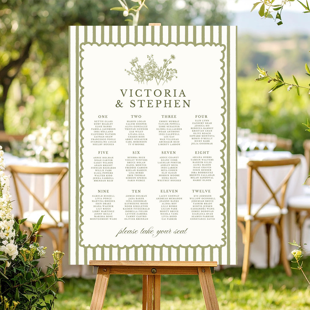 This table plan is available in two print material options. Select from either a poster print - which you will need to frame yourself - or a 5mm foam-core board - which can be stood on an easel or leaned against a wall.