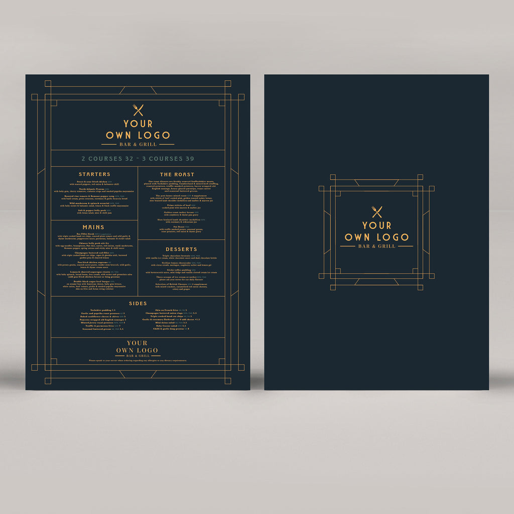 After ordering, please email your company logo along with your finalised menu text to: orders@emmydesigns.co.uk. We will send a digital proof of your design within two working days.