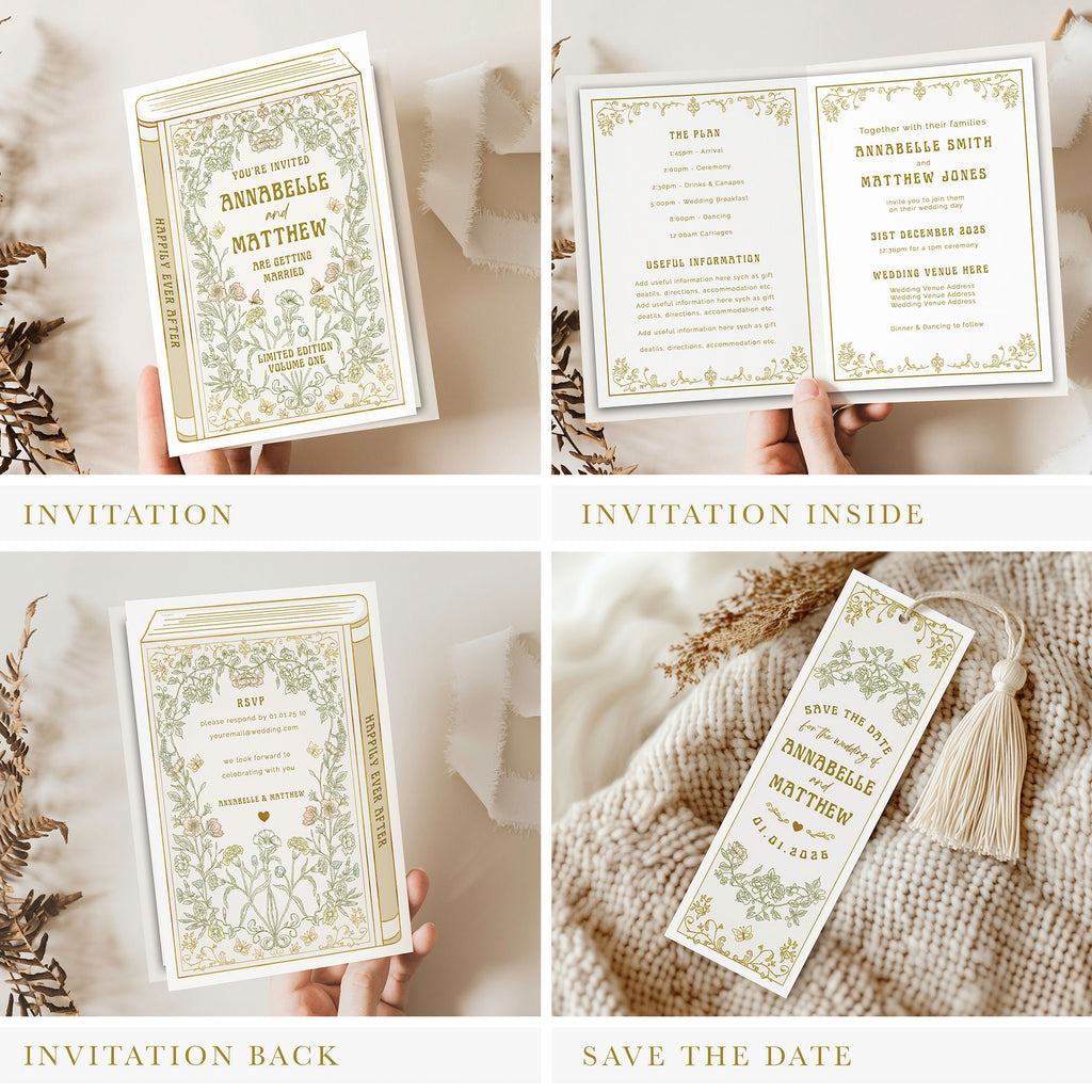 Step into a storybook romance with our Vintage Book collection — a beautifully unique design inspired by the charm of vintage novels. Crafted to resemble a classic book cover, makes it the perfect choice for literature lovers and romantic souls alike.
