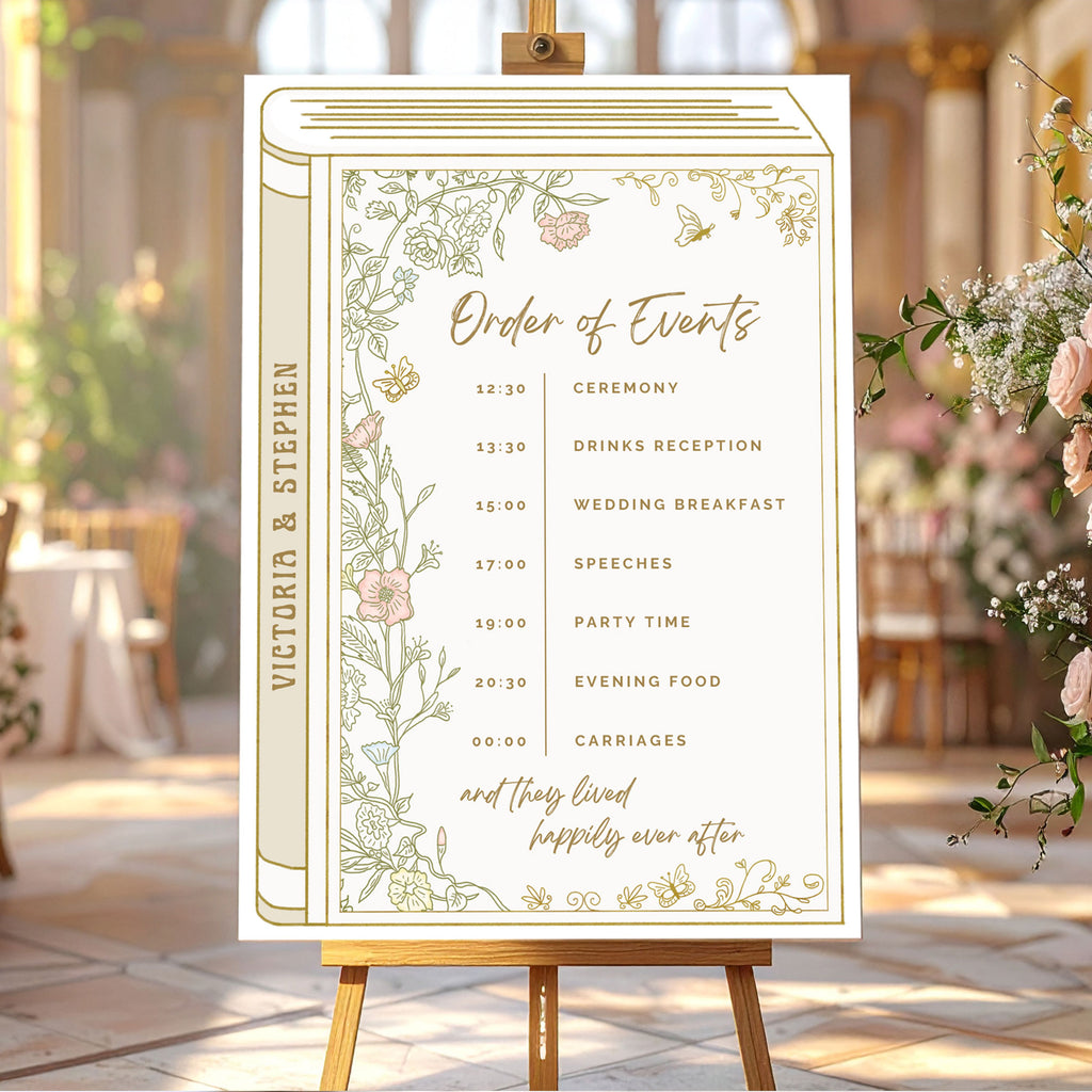 This order of the day sign is available in two print material options. Select from either a poster print - which you will need to frame yourself - or a 5mm foam-core board - which can be stood on an easel or leaned against a wall.